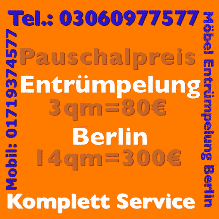 Aufgrund unserer langjährigen Erfahrung, Praxis im Bereich Wohnungsentrümpelung Entsorgung beauftragt uns inzwischen eine Vielzahl an Kunden dies seit vielen Jahren. Denn wir bieten besenrein Wohnungsauflösung zum kleinen Preis. Neben unserem Angebot der kompletten besenrein Wohnungsauflösung kostenlos Wohnungsentrümpelung Entsorgung Wohnungsentrümpelung Berlin sorgen wir selbstverständlich auch für den Abtransport die fachgerechte Wohnungsentrümpelung Entsorgung sperriger Gegenstände Hausrat aller Art. Sie benötigen Platz für neue Möbel oder planen neue PC-Anlagen oder den Kauf von Elektrogeräten? Wir entsorgen zuvor schnell komfortabel Ihre alten Gebrauchsgegenstände Elektrogeräte wie ausrangierte Fernseher, defekte Computer oder Telefone, Handys Smatphones. Damit schaffen Sperrmüllabholung schnell, sauber zum pauschalen Preis Raum für Ihre Neuanschaffungen. Mit uns an der Seite wird die Möbel Wohnungsentrümpelung Entsorgung in zum Kinderspiel. Mobiliar, Gegenstände aus Holz, Sperrmüll Altmetall, aber auch alte Sofas, Pappe, Umzugskartons, Papier Verpackungen Zeitungen entrümpeln wir in besonders kurzer Zeit und garantieren praktisch konkurrenzlose Preise.